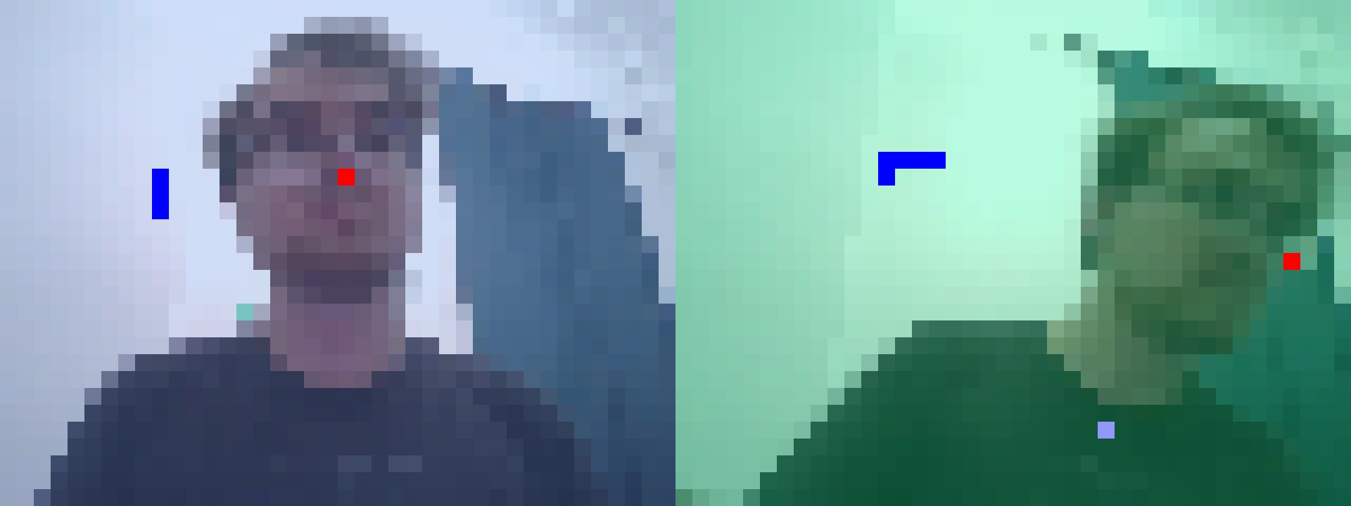 I’m joking, but really–the PoseNet estimation is pretty jittery, which would make for erratic Snake movement and probably a lot of inexplicable game overs or resets if I got it working and kept self-collision enabled. The “game” I inadvertently made with just moving your nose around to eat food is sort of cute, but it could also be made in a much simpler fashion than piggybacking off of Shiffman’s Snake code (you’d just check to see if pose.nose.x and pose.nose.y equal the coordinates of the food on each frame and voila). With that all in mind I arrived at the game’s new control scheme: treating the user’s nose position like arrow keys.